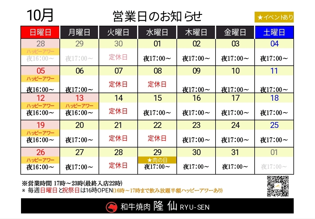 日・祝祭 16:00~23:00(ラストオーダー/料理22:00、ドリンク22:30)
